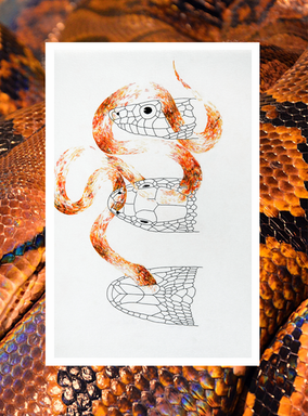 Série de dessins aux interfaces art-sciences. A partir d’un même dessin scientifique de couleuvre, douze oeuvres reprennent les couleurs de serpents nouvellement décrits au Laos.